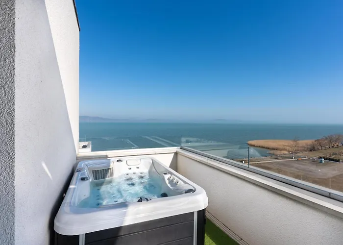 L'appartement Sunset Lakeview With Jacuzzi Fonyód spacieux est situé à environ 4 km de Strand Utcai Strand Fonyod Belatelep et à 2 km de Fonyod Plank Castle. La résidence en bord de mer propose des équipements modernes, tels qu'un Wi-Fi et des éléments essentiels comme un parking privé gratuit pour les voyageurs en voiture.